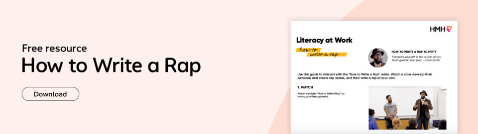 High school teachers can also use the “How to Write a Rap” activity with their students. Alternatively, this resource walks through creating a “guided freestyle,” a written song/verse based on exercises and prompts.